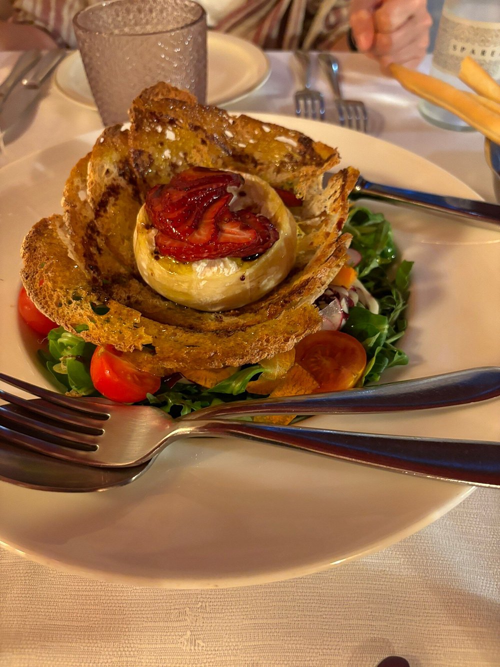 La dimensione è volutamente intima. Qui la cena diventa conversazione, tempo condiviso e attenzione al dettaglio. L’ambiente è elegante ma non formale, coerente con una cucina che punta alla sostanza.