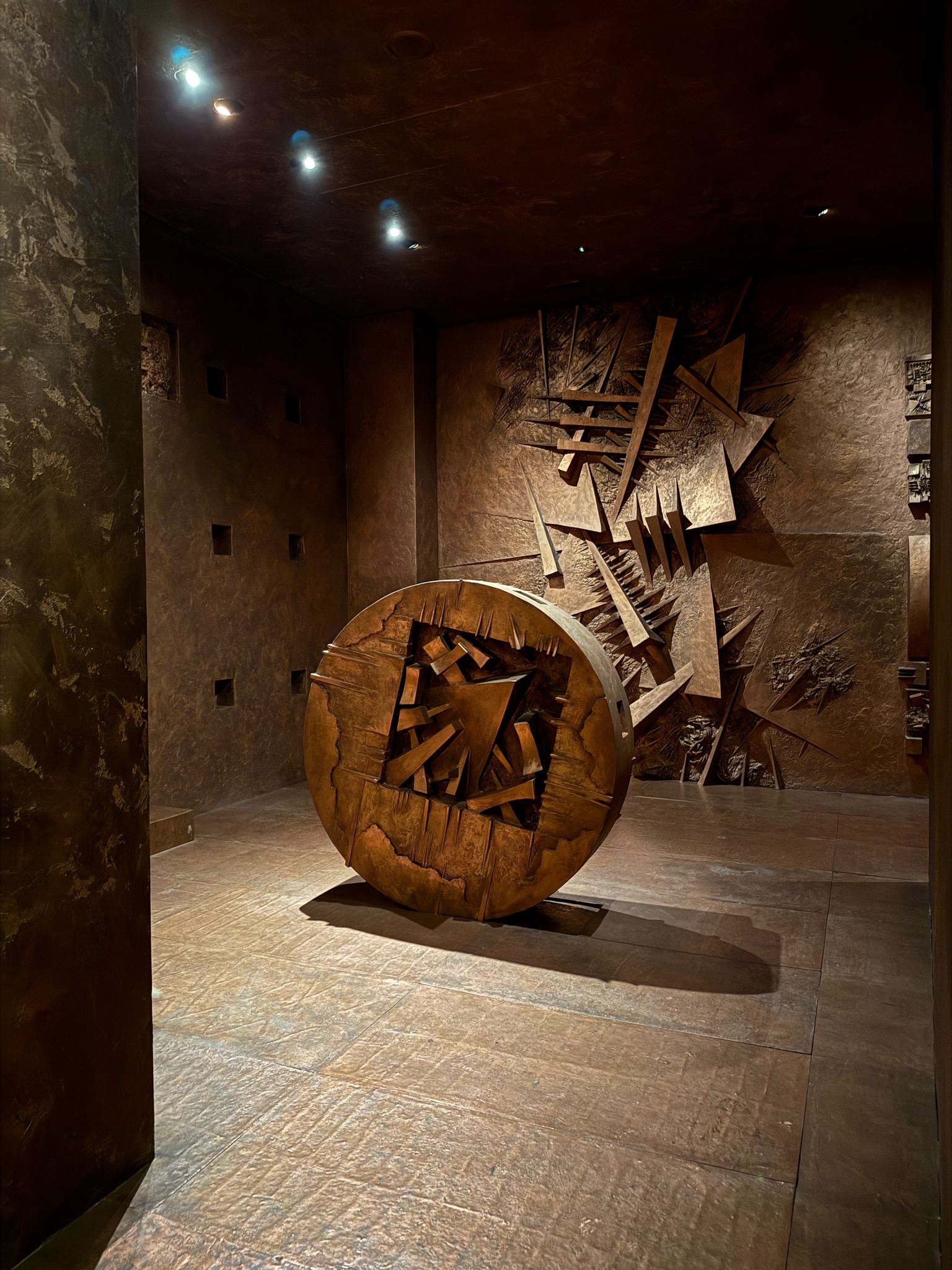 Il Labirinto di Arnaldo Pomodoro è un’installazione ambientale sotterranea concepita come opera totale e ispirata all’Epopea di Gilgamesh. Si tratta di un percorso simbolico e immersivo in cui forme, segni e architetture raccontano la memoria e la visione plastica dell’artista.