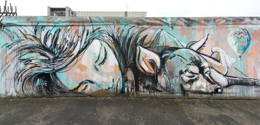 Tra le artiste più interessanti legate alla street art contemporanea c’è Alice Pasquini. Le opere di Alice Pasquini raccontano storie intime e scene di vita quotidiana con uno stile che unisce illustrazione, pittura figurativa e arte urbana Milano. I murales di Alice Pasquini sono presenti in oltre cinquanta città nel mondo.