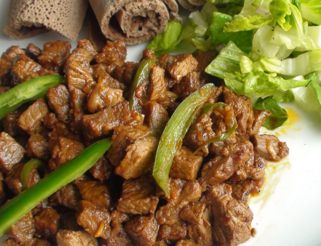 Un’altra specialità molto diffusa è il tibs, bocconcini di carne saltati con spezie e serviti su injera.