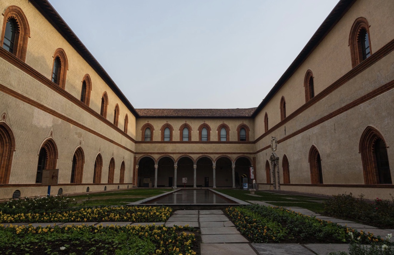 Castello Sforzesco – Piazza Castello, Milano Il complesso ospita diversi musei civici e opere importanti come la Pietà Rondanini di Michelangelo.