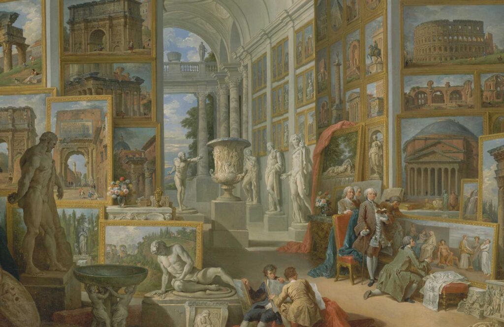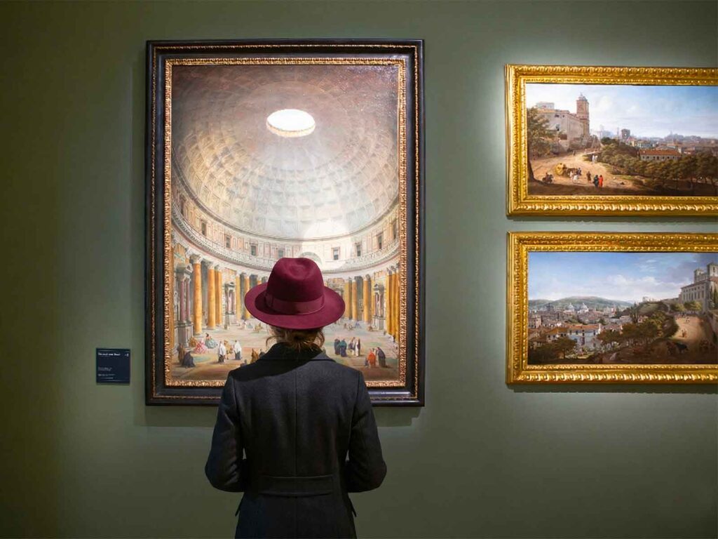 Fulcro della mostra è il capolavoro “Roma Antica” di Giovanni Paolo Panini, esposto come elemento centrale del racconto. Attorno a questa opera si costruisce un dialogo tra passato e presente: vedute, oggetti e testimonianze del viaggio si intrecciano con uno sguardo contemporaneo. A questi si affianca anche il contributo del video “Tutti gli Dèi” di Ferzan Özpetek, che rilegge il Grand Tour in chiave narrativa ed emotiva. Il risultato è una mostra che non si limita all’esposizione, ma costruisce un racconto stratificato.