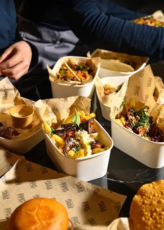 Uno spazio pensato per consumo veloce, asporto e informalità.